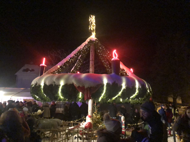 Bei bestem Winterwetter fand am 1. Dezember 2023 in Nonnweiler die beliebte Party um den Adventskranz statt. Auf dem Gelände der Parkschenke Simon hatten die fleißigen Männer des Adventskranz-Teams schon Wochen vorher das Gestell aufgebaut und Unmengen an Tannenzweigen darum gebunden. Der imposante Kranz mit 6 Metern Durchmesser und den vier Kerzen lockte wieder Hunderte Besucher aus der Umgebung an. Glühwein weiß und rot waren genauso begehrt wie saarländischer „Schales“ (geriebene Kartoffeln knusprig mit Speck gebraten).