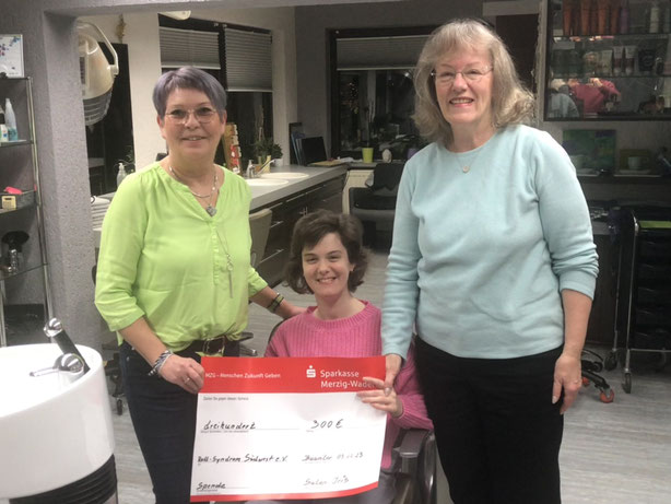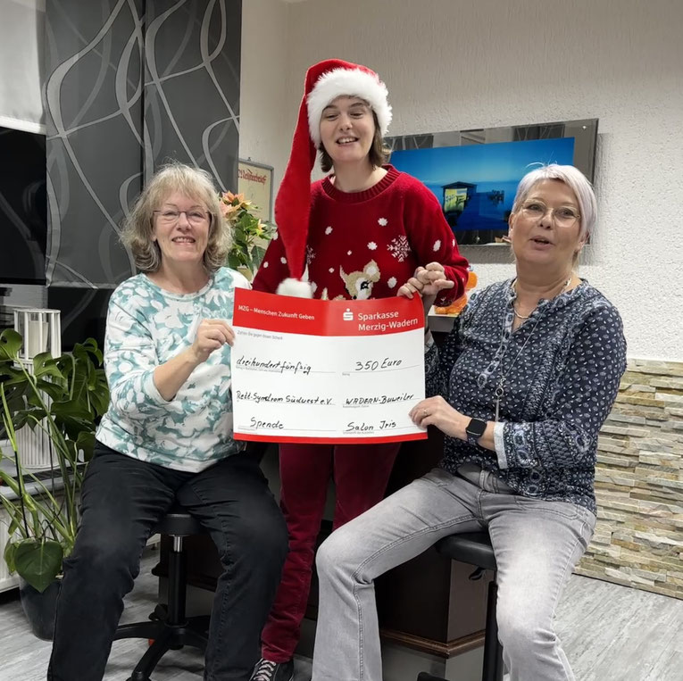 Schon zum 3. Mal hat Iris Breit-Meiers, Besitzerin des Salon Iris in Wadern-Buweiler, anstelle von Weihnachtspräsenten für ihre treuen Kunden, an Rett-Syndrom Südwest e.V. gespendet.